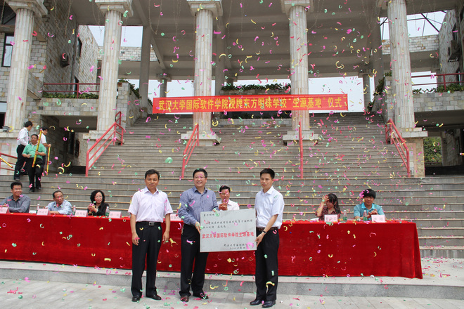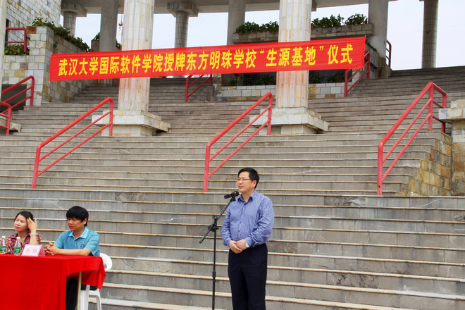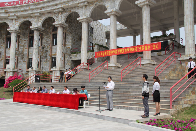4月13日,武汉大学国际软件学院党委书记一行来到东莞,为东方明珠学校进行“生源基地”授牌仪式,在全校引起轰动。