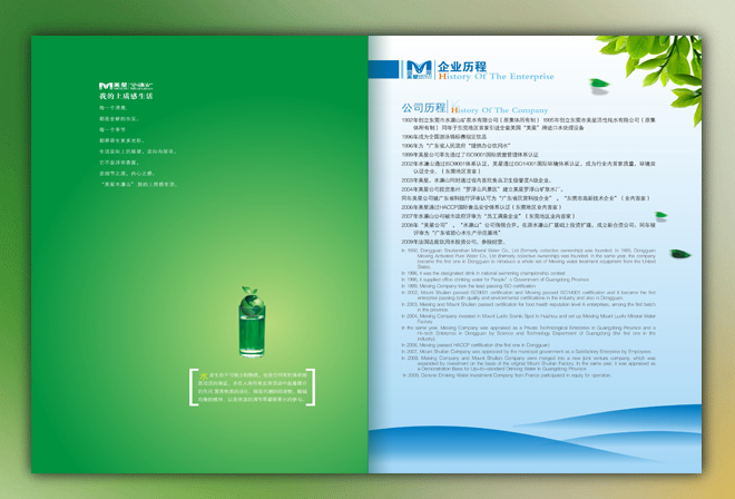 大视野充分发挥专注品牌整合设计的团队优势,首先改良了达能美星公司的品牌标志,以美星大写“M”字母为造形,加以干净清透的渐变蓝,不仅凸显鲜明的行业属性,更显示了山水相伴的深刻寓意,整体具有强烈的视觉冲击力和行业特性,而后,在此基础上建立了一套规范,精致的品牌识别系统,重点展示美星饮用水公司和水濂山饮用水强强联合的品牌实力。