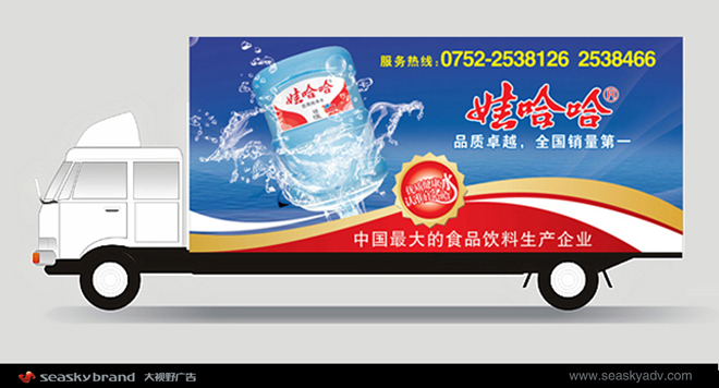 解决方案: 作为广东地区娃哈哈经销商主动携手大视野广告公司对终端专卖门店及户外车身广告,进行了统一视觉形象设计与媒体推广平面设计,为娃哈哈桶装水及娃哈哈饮料在广东市场创造了品牌影响力。
