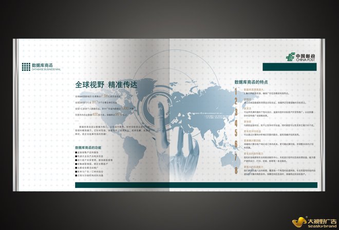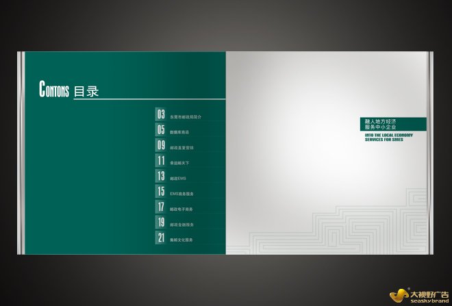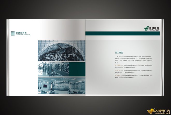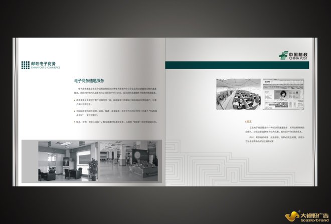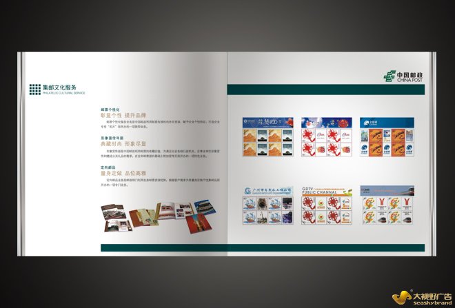 大视野广告公司智囊团为东莞邮政设计了一本独具邮政行业特色与品牌形象的企业形象画册提升了品牌形象,面貌焕然一新。