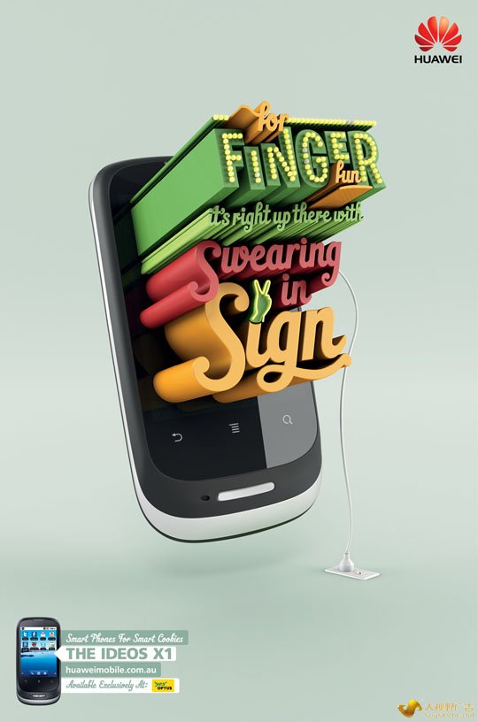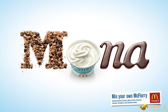 字体具有两方面的作用:一是实现字意与语义的功能,二是美学效应。所谓文字的图形化,即是强调它的美学效应,把记号性的字体作为图形元素来表现,同时又强化了原有的功能。作为广告设计者,既可以按照常规的方式来设置字体,也可以对字体进行艺术化的设计。无论怎样,一切都应围绕如何更出色地实现自己的设计目标。将字体图形化、意象化,以更富创意的形式表达出深层的设计思想,能够克服广告的单调与平淡,从而打动人心。