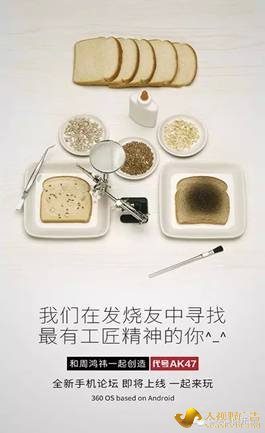 周鸿祎要做手机,手机论坛还未发布,一组海报已惊艳全场。文案简练,只有一句:我们在发烧友中寻找最有工匠精神的你。