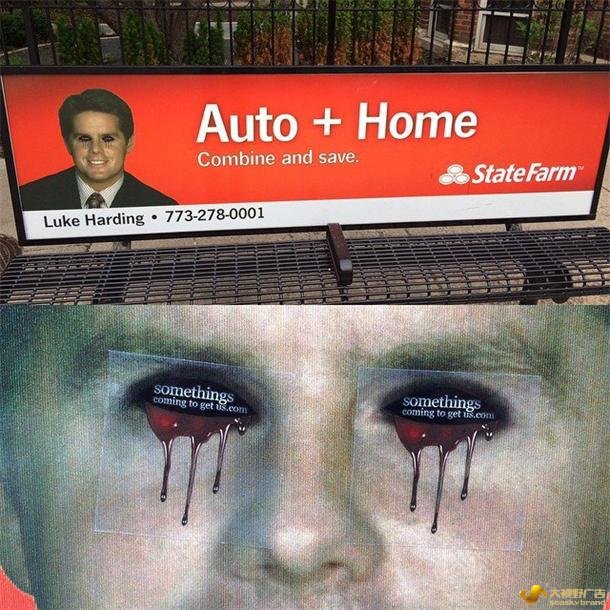 来自芝加哥的学生导演为了宣传其作品《Something's Coming To Get Us》,想出了一个十分低成本的妙招——满大街的广告海报,成了这位学生导演宣传的媒体。它制作了大量的滴血便利贴,贴在了人物的眼睛上。