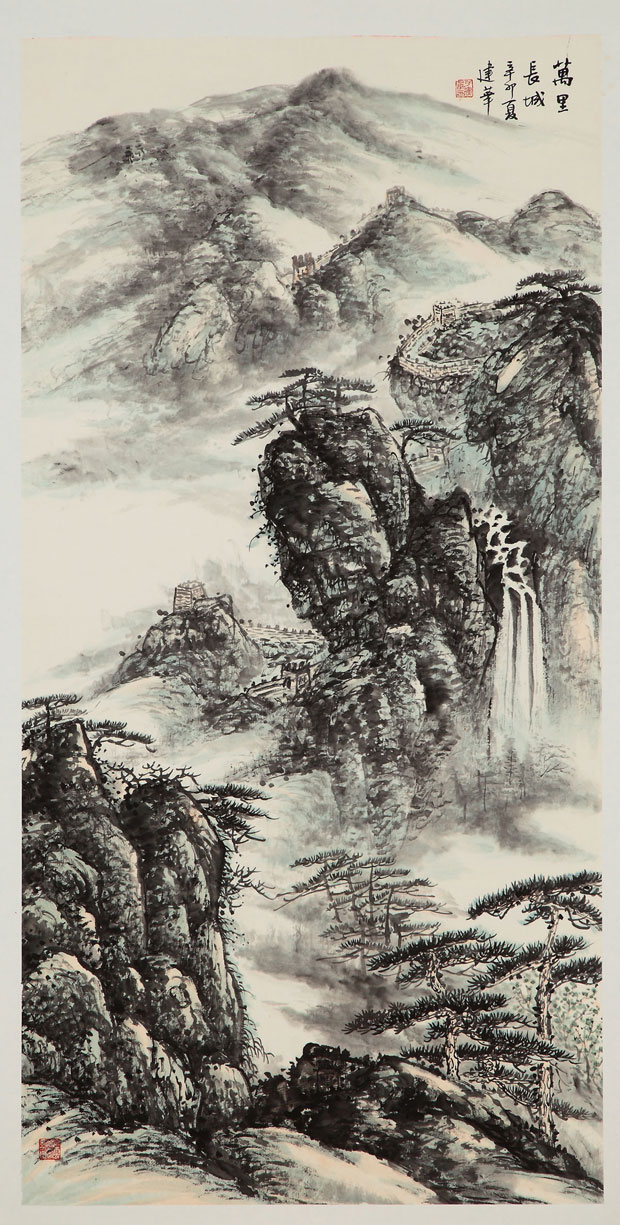 在绘画上,她力求写真趣,抒真情。有真感受、真认识才会生发真性情、真意趣。惟“真”才能打动人。她的真性情源自于一颗未泯的“童心”和对先贤心性的神会,更来源于师法造化。“画家以古人为师,已是上乘,进此当以天地为师。”(董其昌《画禅室随笔》)江南的清岚烟霭,草木葱茏,风景如画。她与山水为伴,沉醉其中,危崖巨石、岸砥涧涘、野树杂花、溪边茅舍、篱畔竹菊……信手拈来,都成了她的写生对象。师法古贤,使他了悟古代山水画家所取资的自然、所师的造化各不相同。学古贵在能变,变的关节在于她对自然之美的感觉的典型抽象与自我的造境抒情的有机融合,画中有我,画中有诗,呈现出自己的意境与情思,赋予作品以鲜活的生命,从而达到物为我用,借物写心的艺术境界。她的《春醉虎丘意正浓》、《雨后空林生白烟》、《万里长城》、《松风伴清音》等作品便是她师法自然、融通古今的印证。